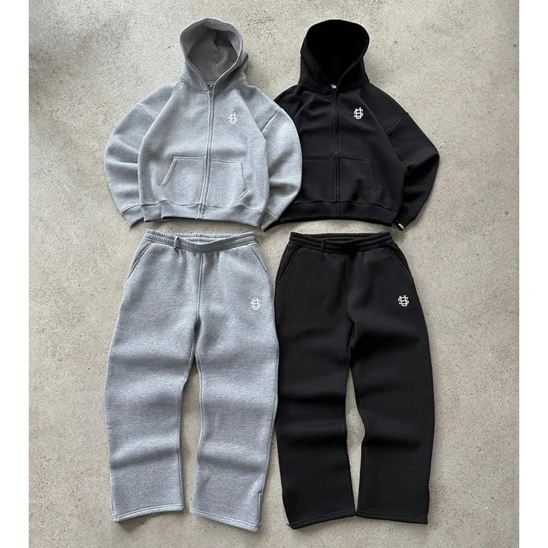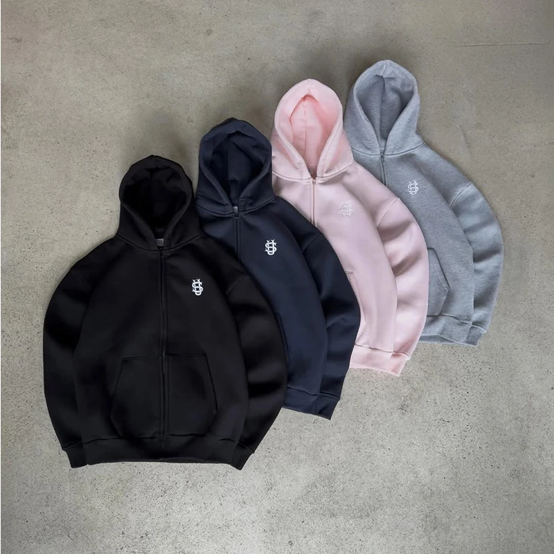 2025 New Men Clothing Tracksuit Hoodie Solid Color Warm Sweater Loose Oversized Sports Suit Pullover Pink Street Fashion