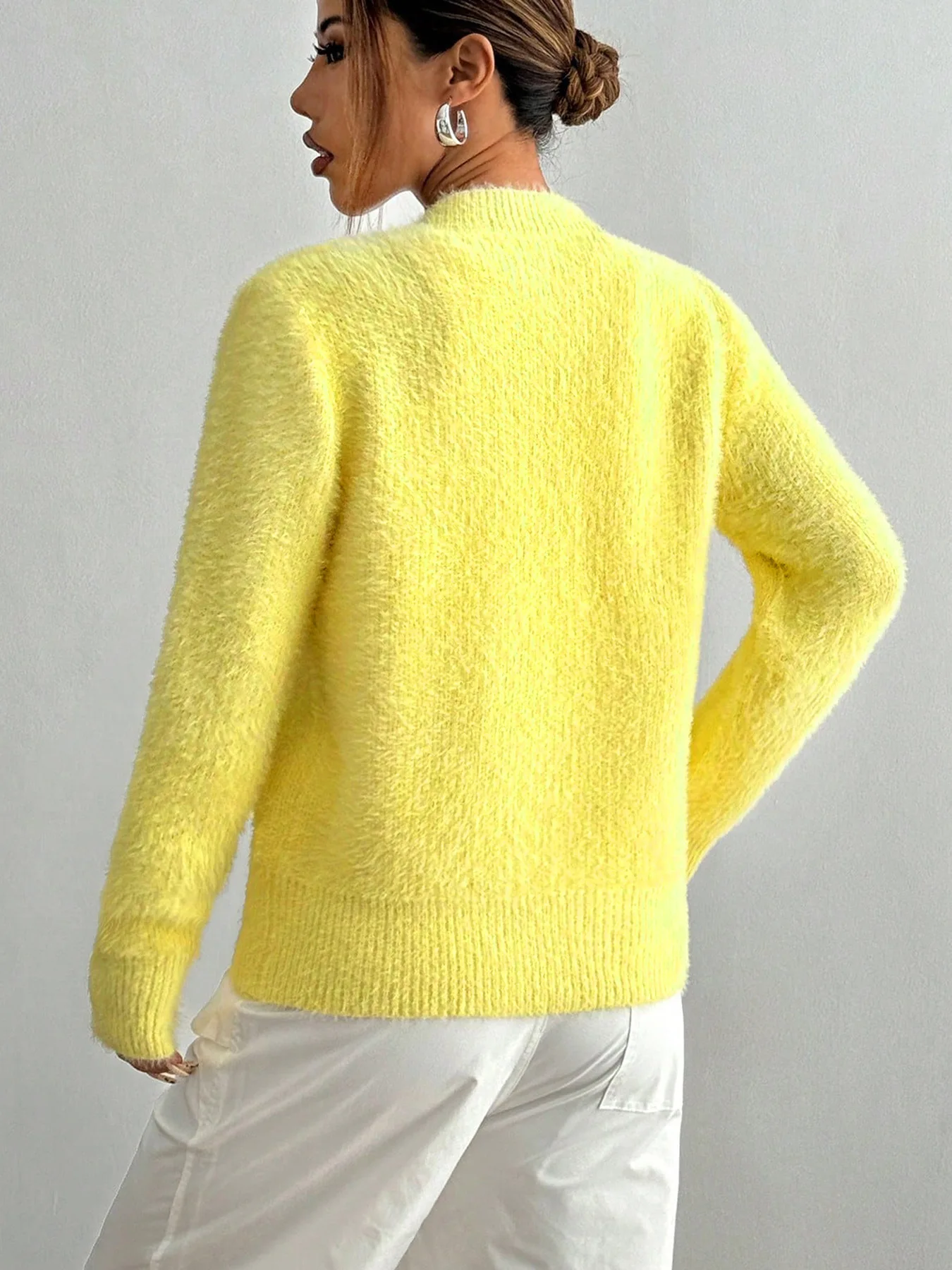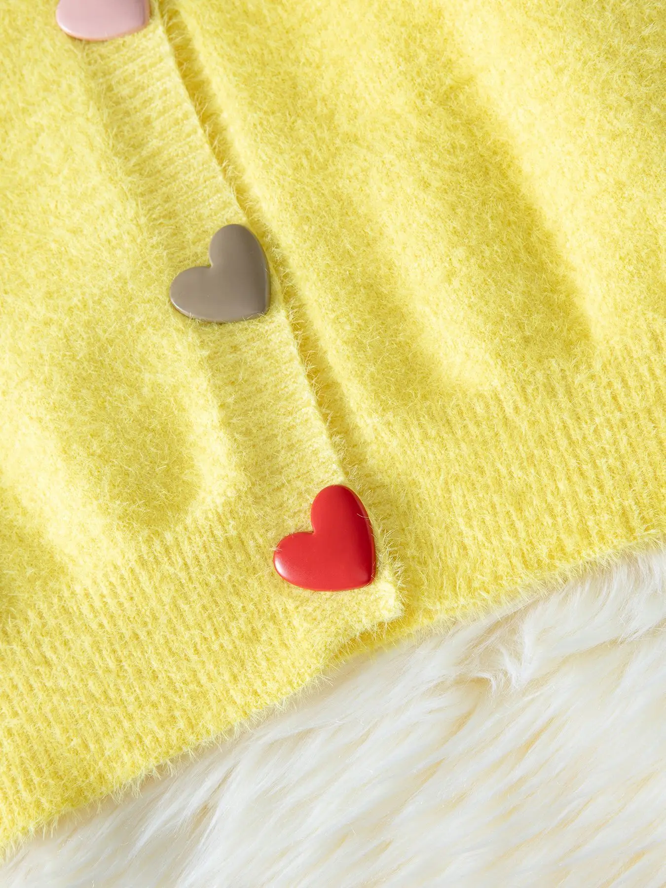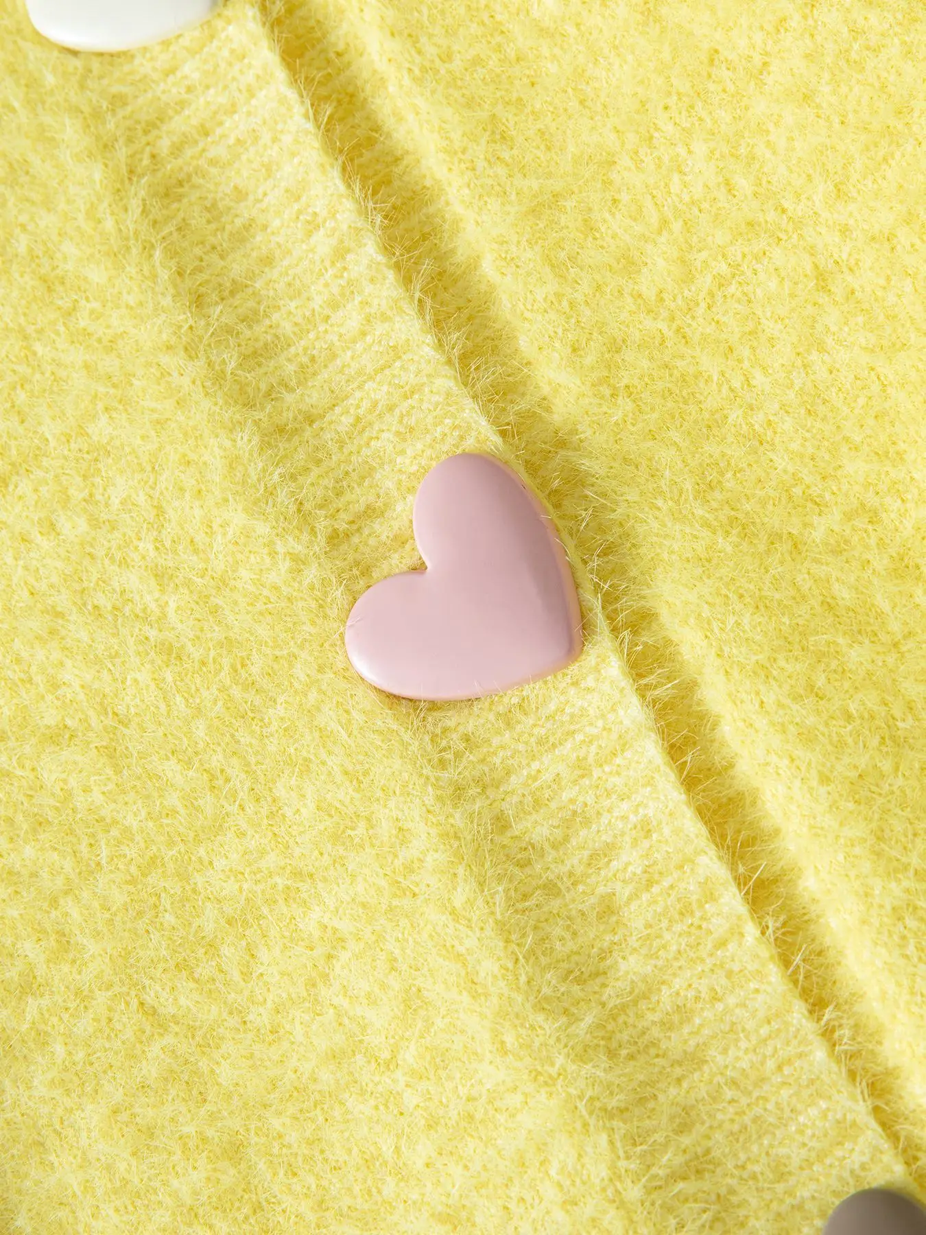 Yellow Cardigan Heart Long Sleeve Knit Sweater